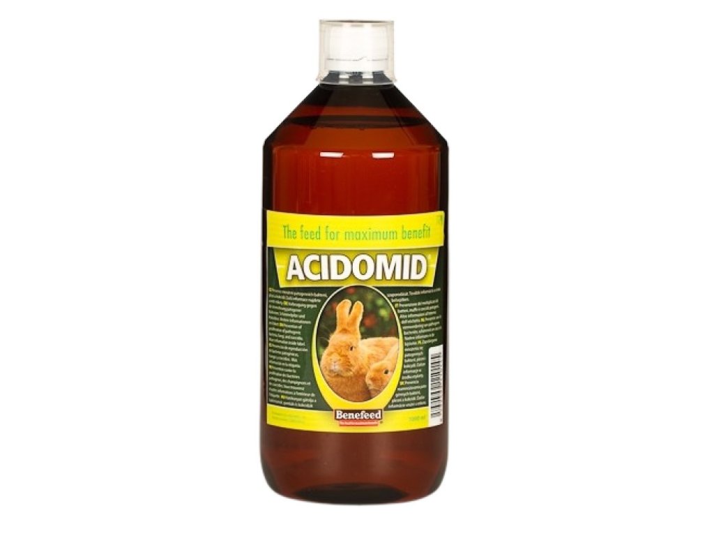 ACIDOMID® je špičkový výrobek moderní koncepce působící nejen proti množení patogenních bakterií, ale velice dobře také tlumí rozvoj a množení nitrobuněčných parazitů jako např. kokcidií. ACIDOMID® však není léčivo, neobsahuje ani kokcidiostatika a nezanechává tak rezidua v organismu. Nemá také ochranné lhůty.ACIDOMID® obsahuje kompletně všechny organické kyseliny důležité pro zažívání a trávení. Organické kyseliny okyselují napájecí vodu, účinně ji také konzervují a stabilizují. Je tak výrazně omezováno nežádoucí množení patogenních bakterií a plísní v napájecí vodě, napáječkách a v rozvodech napájecí vody. Organické kyseliny jsou lehce stravitelné, v organismu jsou navíc využitelné jako zdroj energie. Organické kyseliny také redukují potíže zažívacího traktu a zlepšují stravitelnost bílkovin.ACIDOMID® díky látkám přírodního charakteru snižuje množení nitrobuněčných parazitů, jako jsou například kokcidie. Pro maximální efekt je však třeba pravidelného podávání do napájecí vody kdykoli ji měníte. ACIDOMID® jako jediný přípravek svého druhu na trhu obsahuje vyvážený poměr elektrolytických prvků podporujících účinnost jednotlivých aktivních složek výrobku. Elektrolyty urychlují a zvyšují přechod účinných látek přes buněční membránu do nitra buňky.Složení: