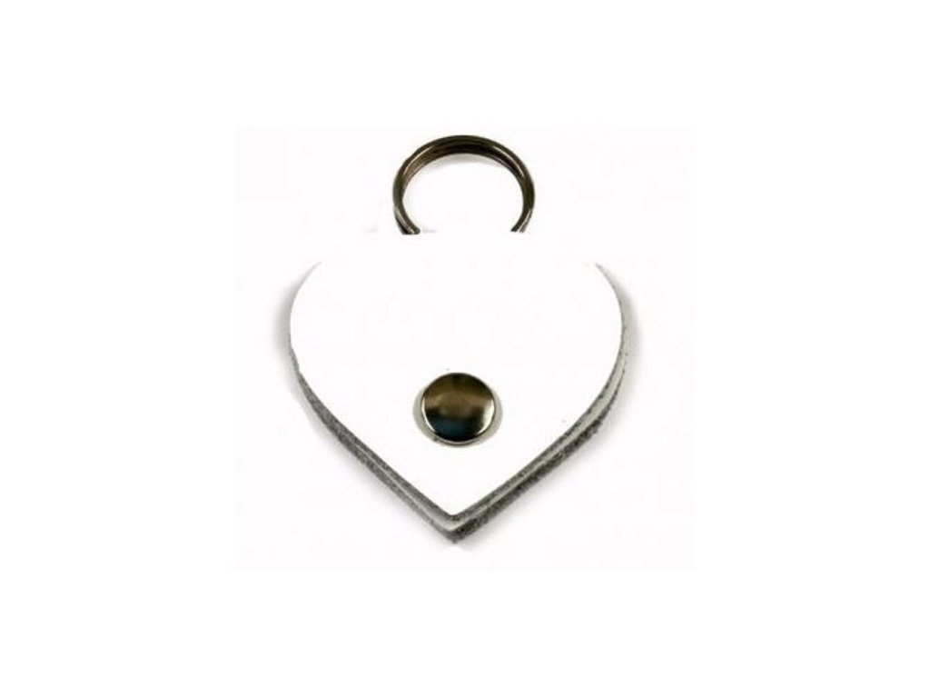 Srdíčko je vyrobené z kůže, obšité a pro zapnutí vybavené drukem. Srdíčko připevníme klíčovým kroužkem k obojku. Je určeno pro kulatou psí známku- zabraňuje tak oděru, či napsané údaje o pejskovi.Barva: bílá
