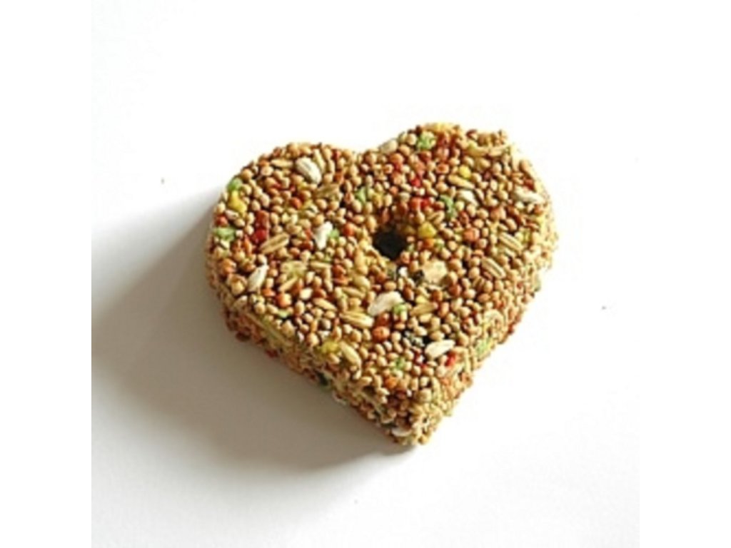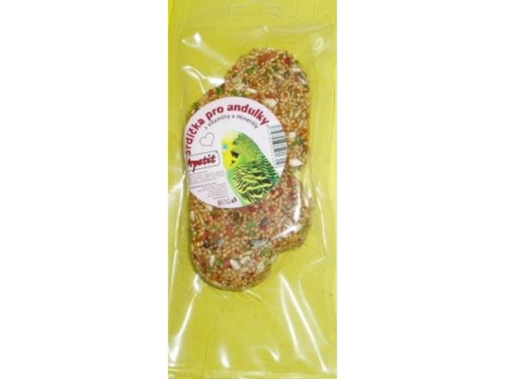 Tvarovaná pochoutka s medem a mrkví pro andulky. Srdíčka s vitamíny a minerály.