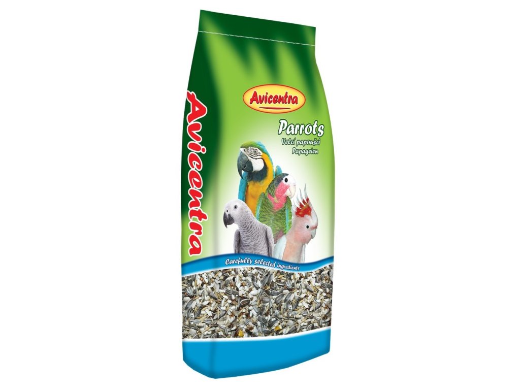 Složení: slunečnice (bílá, žíhaná), safrol, oves bezpluchý, pohanka, burské ořechy, čirok (bílý, červený), hrachové vločky, oves (žlutý, černý), dýňová semena, rozinky, konopné semeno, kukuřice, kukuřičné vločky, paddy rýže, extrudované granule s ovocem, banány, svatojánský chléb, pšenice.Deklarované jakostní znaky: hrubý protein 15,2%, hrubá vláknina 9,7%, hrubé oleje a tuky 17,5%, vlhkost 13%.Krmivo pro amazoňaky, žaky, ary, kakadů a další velké papoušky. Doplňujte o čerstvé ovoce, zeleninu aj. Pro lepší trávení podávejte říční písek, nebo grit. Zajistěte dostatek čerstvé pitné vody. Staré zbytky krmiv pravidelně odstraňujte.