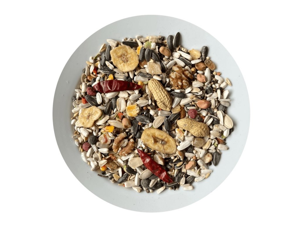 Krmný návod: Krmte dle potřeby. Zajistěte dostatek pitné vody.Složení: slunečnice, safrol, buráky, oves nahý a celý, pohanka, banány, kukuřice, dýně, cedrové ořechy, čirok, konopí, hrachové vločky, extrudované obiloviny, papája, mrkev, rozinky, chilli papričky.Analytické složky: hrubý protein 15,4%, hrubá vláknina 9,5%, hrubé oleje a tuky 18%.
