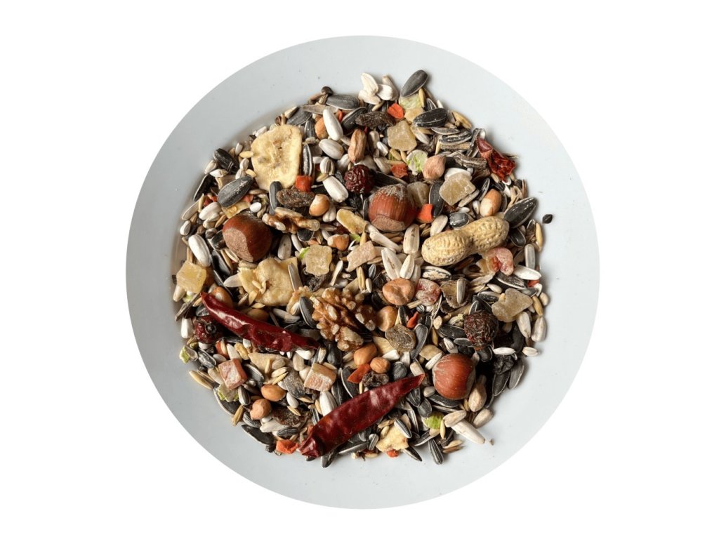 Krmný návod: Krmte dle potřeby. Zajistěte dostatek pitné vody.Složení: semena, ovoce 20%, obiloviny, ořechy 11%, vedlejší výrobky rostlinného původu, zelenina, minerální látky, oleje a tuky.Deklarované jakostní znaky: hrubý protein 13%, hrubá vláknina 10%, hrubé oleje a tuky 16%.
