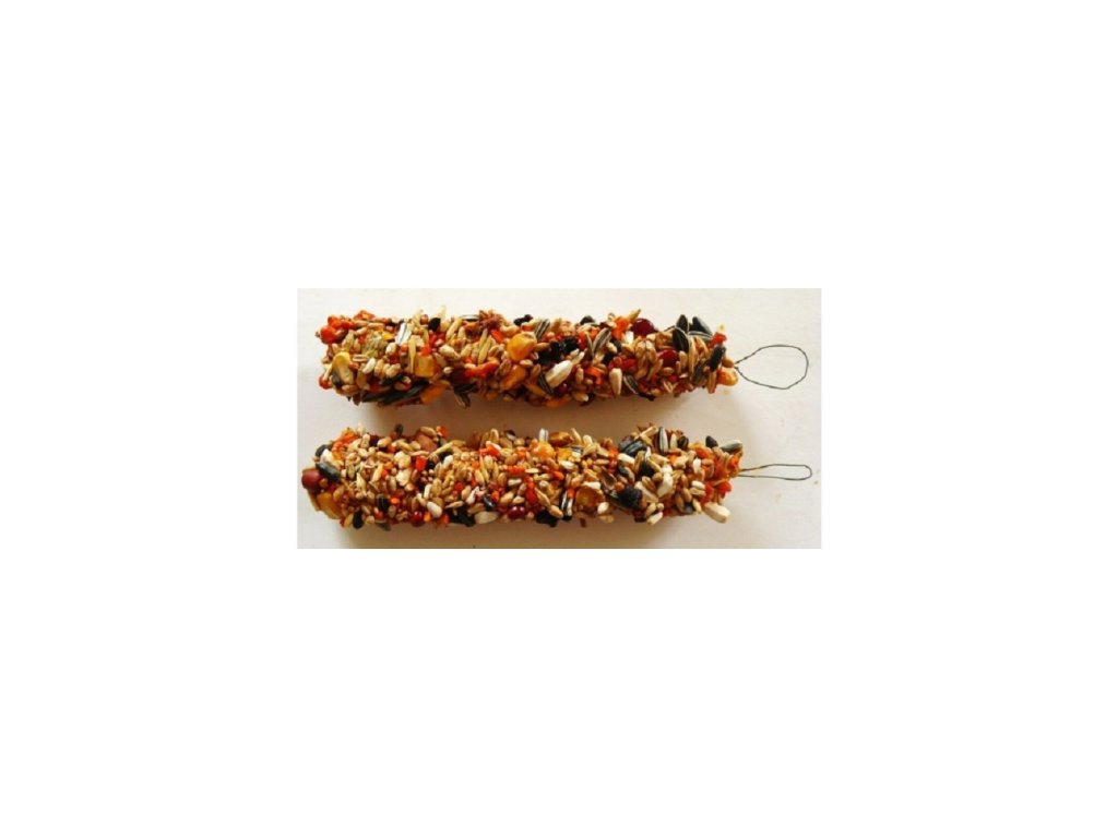 Tyčinky s vitamíny a medem jsou výbornou pochoutkou, ale také krmivem, které Vašemu mazlíčkovi dodává důležité vitamíny a minerály pro zdravý a vitální život. Tyčinky jsou speciální krmivo, kde musí Váš mazlíček vyvinou úsilí k získání své potravy podobně jako v přirozeném prostředí. To napomáhá jeho fyzické a psychické kondici.Složení: obiloviny, pekařské výrobky, zelenina, ořechy, ovoce, minerální látky oleje a tuky. Obsahuje povolená barviva EU.Analytické složky: hrubý protein 12%, hruba vláknina 5%, hrubé oleje a tuky 4%.Tyčinky s medem jsou pochoutkou, výživným krmivem a hračkou zároveň.Balení: 2ks