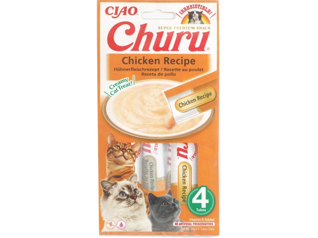 Lahodný, přírodní pamlsek krémové konzistence bez obilovin. Zdravé mlsání s nízkým obsahem kalorií, bez konzervantů, chemických aromat, bez barviv a umělých dochucovadel. Masové pyré můžete také podávat stejně jako jinou kočičí kapsičku přímo z misky, nebo ho můžete přidat ke granulím pro vylepšení jejich chuti. Má vysoký obsah vody a díky tomu je vhodným doplňkem k suchému krmivu. Churu jsou 100% přírodní a zdravé mlsání pro kočky všech věkových kategorií. Churu jsou ideální pro ukrytí tablety na odčervení či jiného léku, který je potřeba kočce nenásilně podat. Vysoký obsah vody, bez konzervantů. Složení: kuře 30,0%, tapioka, výtažek z hřebenatky, kolagen, výtažek ze zeleného čajeAnalytické složení: bílkoviny 8,5%, obsah tuku 0,5%, vláknina 0,1%, popel 1,5%, vlhkost 88,0%.Doplňkové látky na kg: Vitamin E 310 m.j.m.j.=mezinárodní jednotkaTechnologické přísady: Guma guar 7,2 g.