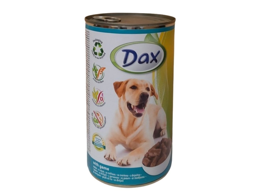 Kompletní mokré krmivo pro psy se zvěřinou v omáčce.