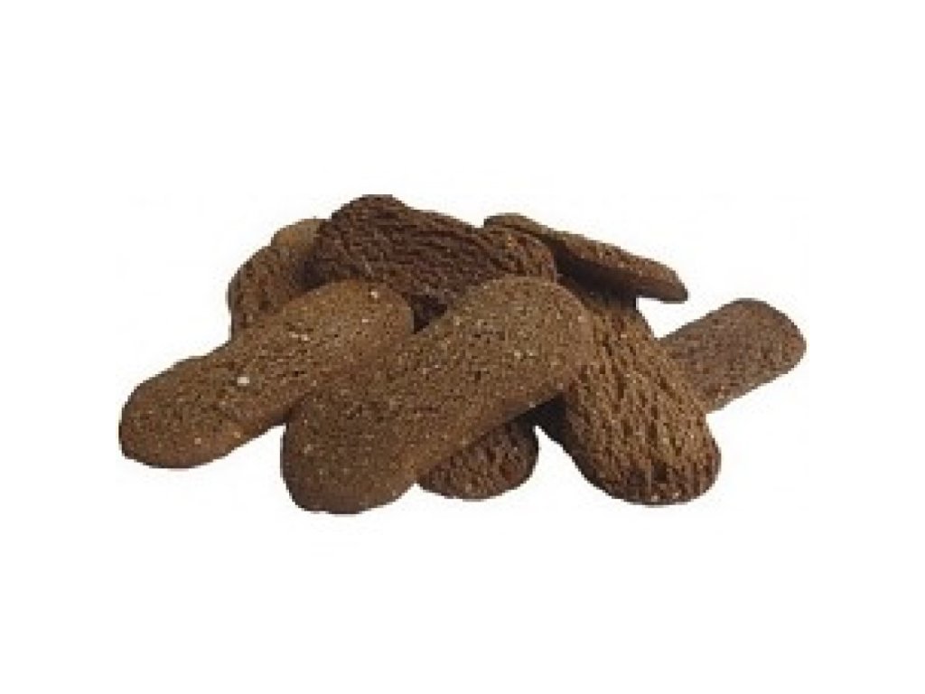 Je to kvalitní doplňkové krmivo vhodné pro každého psa jako pamlsek a doplněk každodenní stravy. Jsou tvrdé, křupavé pečivo, které díky své zvláštní struktuře nutí Vašeho psa skutečně žvýkat a to působí na posilování žvýkacích svalů a zubů.Složení: pšeničná mouka, hovězí moučka, ječné kroupy, minerální látky, krmné kvasnice, sušené mléko.Výživové hodnoty: bílkoviny 21,5%, tuky 4,6%.