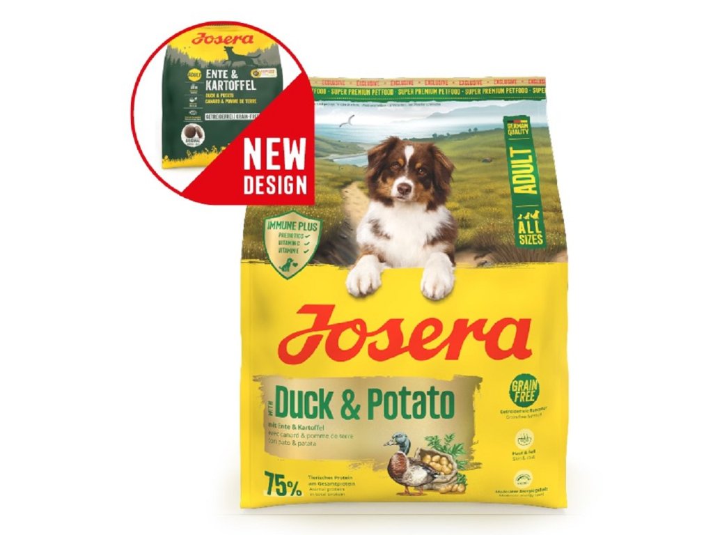 - JOSERA Kachna & brambor může být také podávána dospělým psům k vyvážení nutričního profilu a taktéž je-li nutné, aby pes držel dietu bez obilovin.