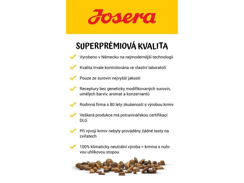 Josera je renomovaná značka krmiv z Německa, známá svou vysokou kvalitou a přírodními recepturami. Nabízí krmiva bez umělých přísad, barviv a konzervantů, s důrazem na zdraví, vitalitu a výživu psů a koček všech věkových kategorií. V portfoliu najdete speciální receptury pro štěňata, seniory, aktivní psy i citlivá zvířata. Vyberte si krmivo Josera – to nejlepší pro vašeho čtyřnohého mazlíčka!