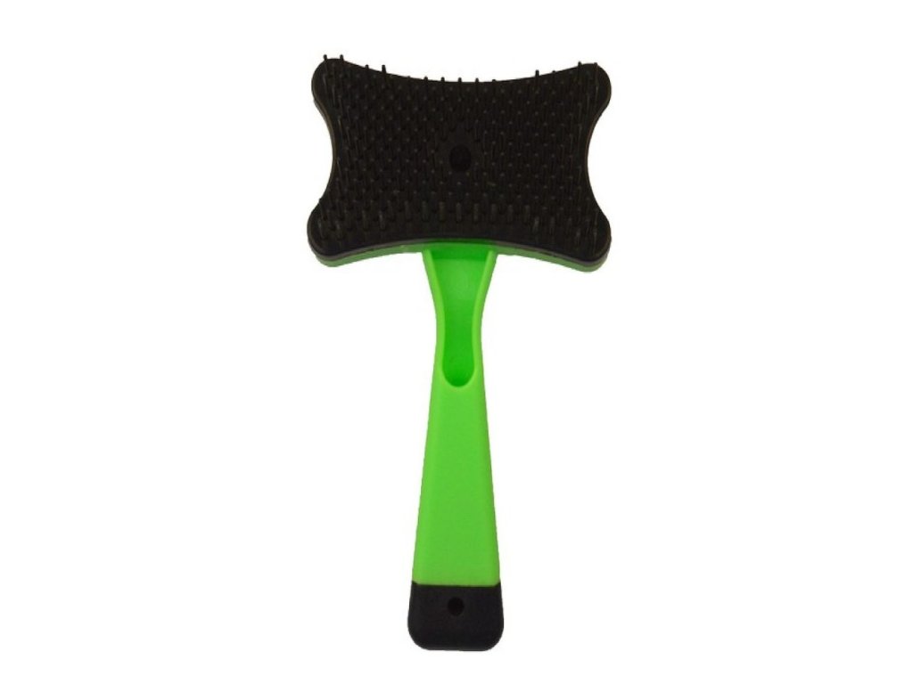 Praktický kartáč pro každodenní péči o srst Vašich zvířat. Pomocí něj lehce vyčešete zamotané chloupky nebo také zamotané kousky sena či podestýlky.Rozměr: 13 x 8 cm