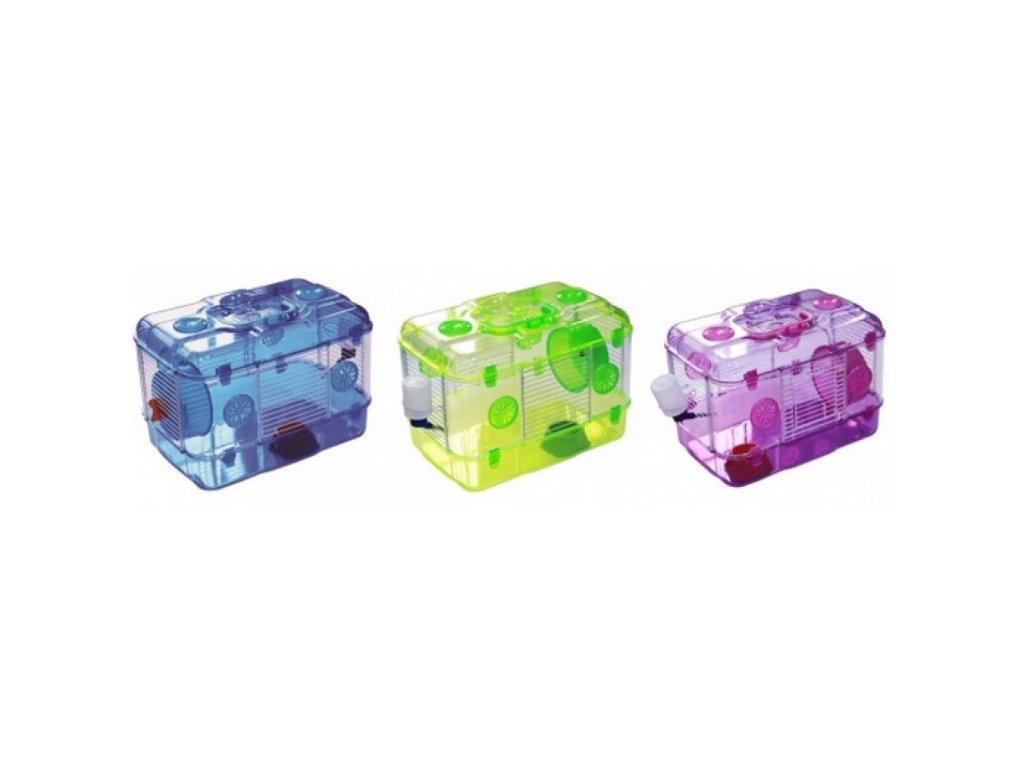 Klec s vybavením pro menší hlodavce jako jsou křečci, osmáci a ostatní hlodavci podobné velikosti. Do spodní části je vhodné dát piliny, hobliny, nebo jinou jemnou podestýlku.Rozměr: 39 x 26 x 28cm