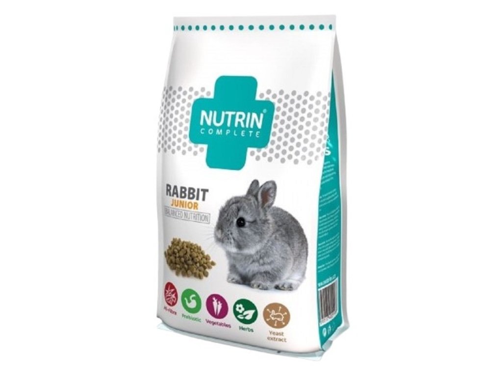 Krmný návod: do 8. měsíce věku je možné neomezené dávkování. V pozdějším věku, by králík měl přejít na krmivo Nutrin Complete Rabbit (v kombinaci s krmivem Nutrin Complete Rabbit, je krmivo Nutrin Complete Rabbit Junior vhodné pro březí a kojící samice). Vždy zajistěte neomezený přístup k senu a čerstvé vodě. Spestření ve formě zeleného krmiva, čerstvého ovoce, zeleniny a ohryzu je možné. Veškeré změny, týkající se krmné dávky, by měly být prováděny s ohledem na tělesnou hmotnost, kondici a zdravotní stav jedince.