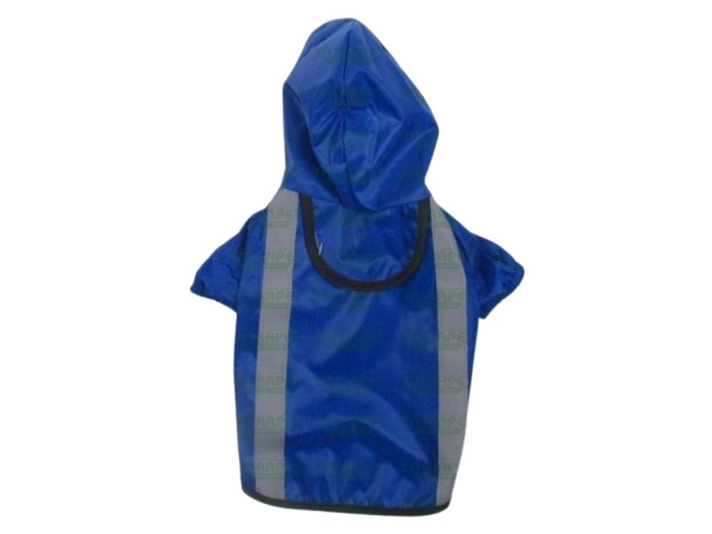Pláštěňka pro psy z materiálu odolného proti vodě i větru, která ochrání Vašeho pejska před deštěm. Lehce se obléká, zapínání na suchý zip. Opatřená reflexními pásky pro snadnou viditelnost.Rozměr : 20cm (měříme od kohoutku po kořen ocasu)Údržba: ruční praní, max.do 30°CBarva: modráMateriál: polyester