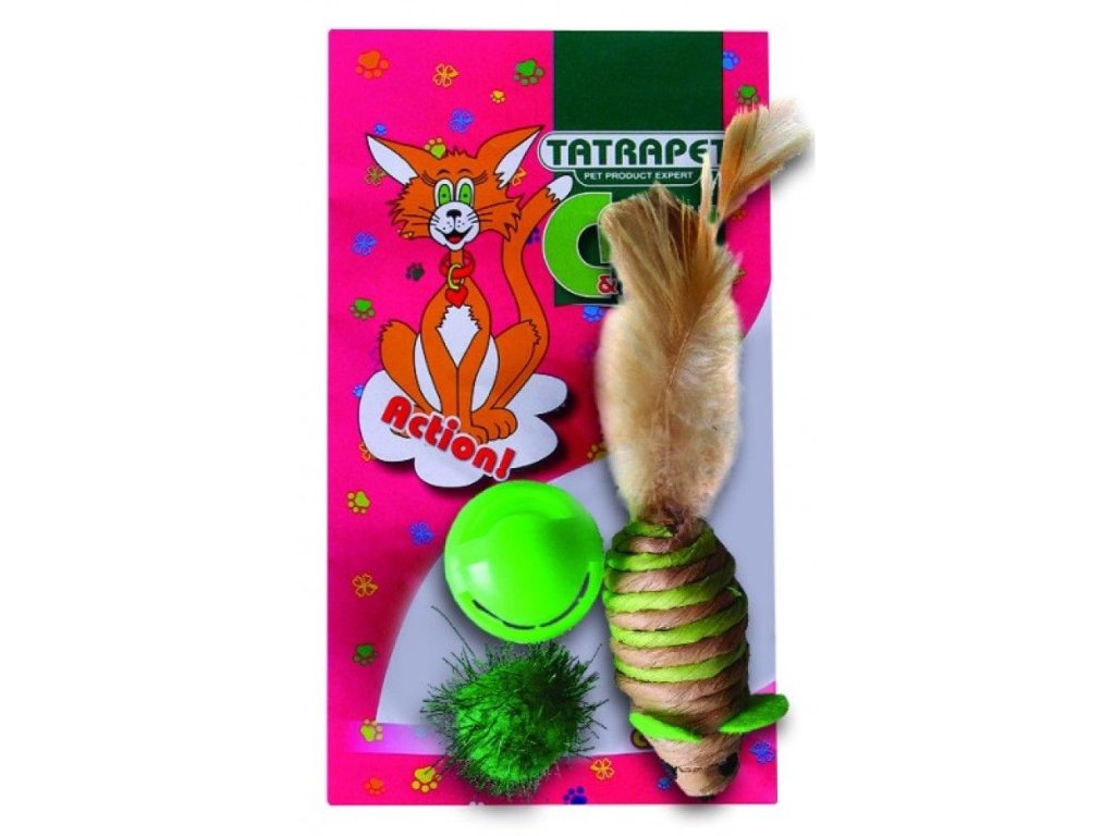 Hračky jsou vhodnou zábavou i v případě, že kočka zůstane doma sama. Správná hračka přinese radost a pestrost do života Vašeho zvířátka. V balení je 1x míček plast s rolničkou, 1x míček látka, 1x myška. Rozměr: 3,5-6,3cm. Barva: různá. Zasíláme barvu dle aktuální skladové zásoby.