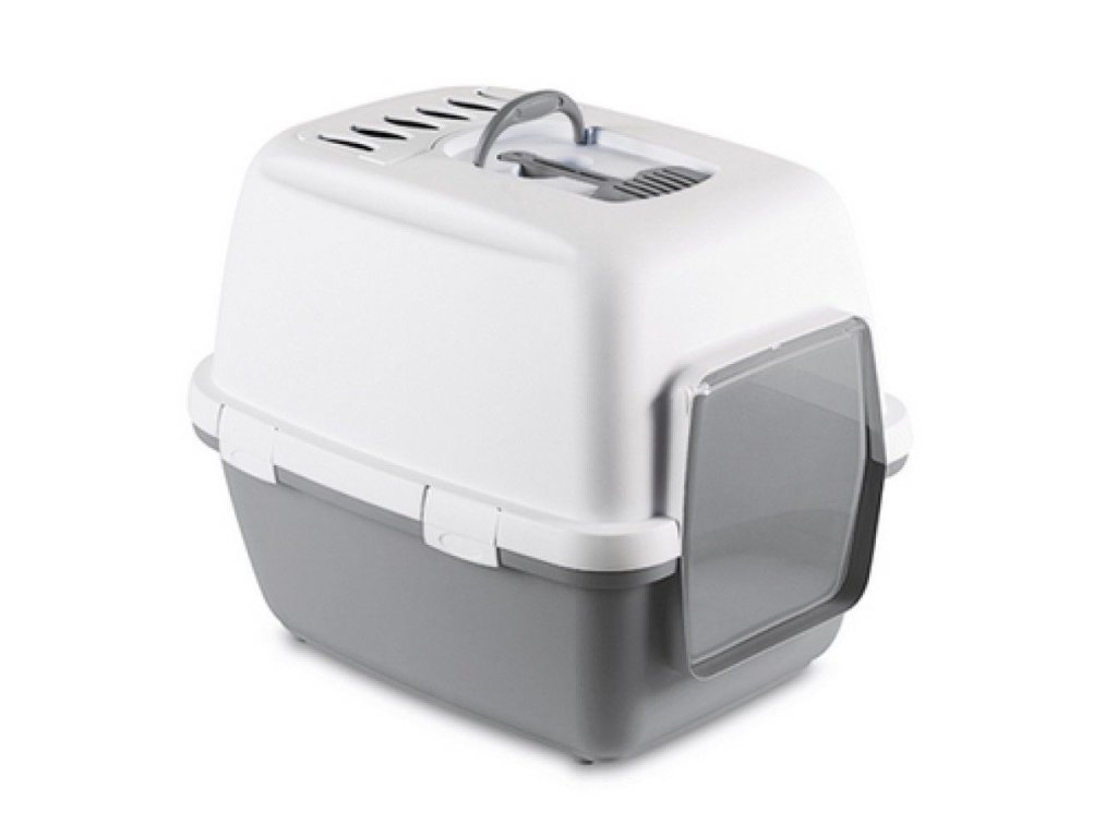 Prostorné kočičí WC pro kočičky s krytem, dvířky, protipachovým filtrem, úchytem na přenos toalety a lopatkou k čištění toalety. WC je snadno omyvatelné.Vnější rozměr: délka 58 x šířka 45 x výška 48cmBarva:viz foto