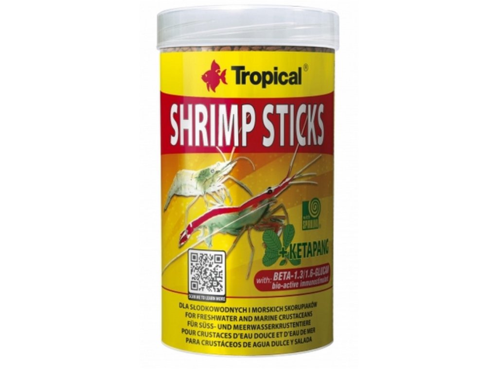 Mnohosložkové, základní krmivo ve formě klesajících tyčinek, určené ke každodennímu krmení sladkovodních i mořských korýšů, včetně velmi populárních sladkovodních trpasličích krevet. Přídavek řas Spirulina platensis je zdrojem cenných vitamínů a aktivních látek, které společně s přírodním imunostimulátorem – beta-glukanem aktivují imunitní systém korýšů, čímž zvyšují jejich odolnost proti nemocem. Přítomné v krmivu přírodní karotenoidy udržují korýše v bezvadné kondici, zvýrazňují jejich zbarvení a sehrávají významnou úlohu při správném průběhu procesu svleku. Složení: ryby a výrobky z ryb, měkkýši a korýši (moučka z krilu min. 2,5%), produkty rostlinného původu (v tom listy ketapang Terminalia catappa 2%), řasy (Spirulina platensis min. 3%), obiloviny, droždí (v tom Beta-1,3/1,6-Glukan 1 000 mg/kg), oleje a tuky, krmné složky minerálního původu (v tom zeolit 1%). Doplňkové látky (na kg): Vitamíny, provitamíny a chemicky přesně definované látky se srovnatelným účinkem: vit. A 29 800 m.j., vit. D3 1 890 m.j., vit. E 100 mg, vit. C 250 mg. Stopové prvky: E1 (Fe) 36,5 mg, E6 (Zn) 10,0 mg, E5 (Mn) 7,6 mg, E4 (Cu) 1,8 mg, E2 (I) 0,22 mg, E8 (Se) 0,22 mg, E7 (Mo) 0,05 mg. Barviva: astaxantin 80 mg. Antioxidanty. Analytické složky: hrubý protein 45,0%, hrubé oleje a tuky 7,0%, hrubá vláknina 4,0%, vlhkost 8,0%.